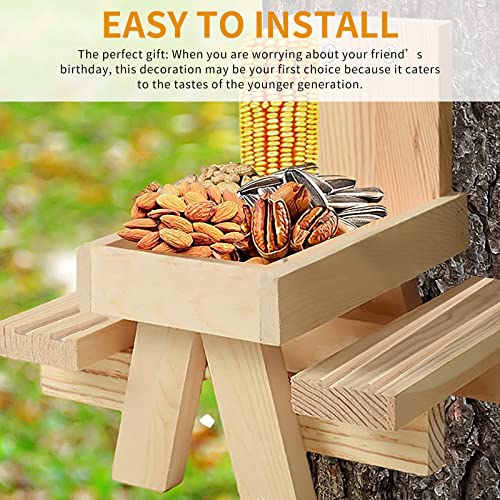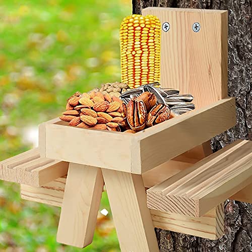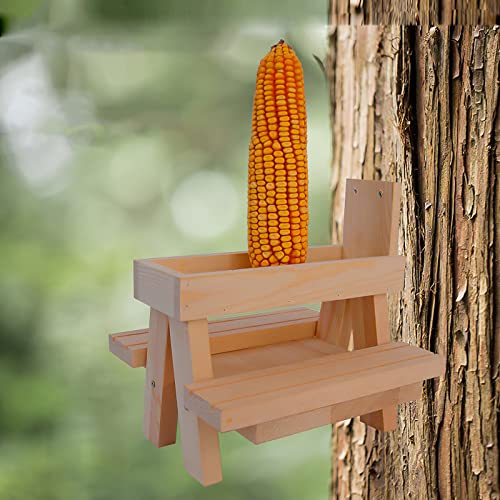 DeeCozy Eekhoorn Feeder Picknick Tafel, Houten Nesting Vogelhuis Hangend Voedingsstation Maïs Cob Houder Eekhoorn…